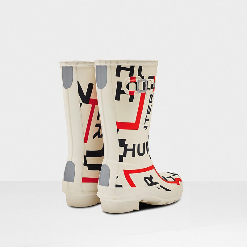 Hunter's Big Kids Rain boot features the iconic exploded logo print in striking colorway. A mini version of the iconic Original Tall Boot, this big kid’s boot is a crafted for little feet from vulcanized natural rubber that is highly resistant to wear and abrasion. With the added safety of reflective patches, Hunter Original tread and a comfy lining, you can let your little pioneers take on new depths of exploration.
